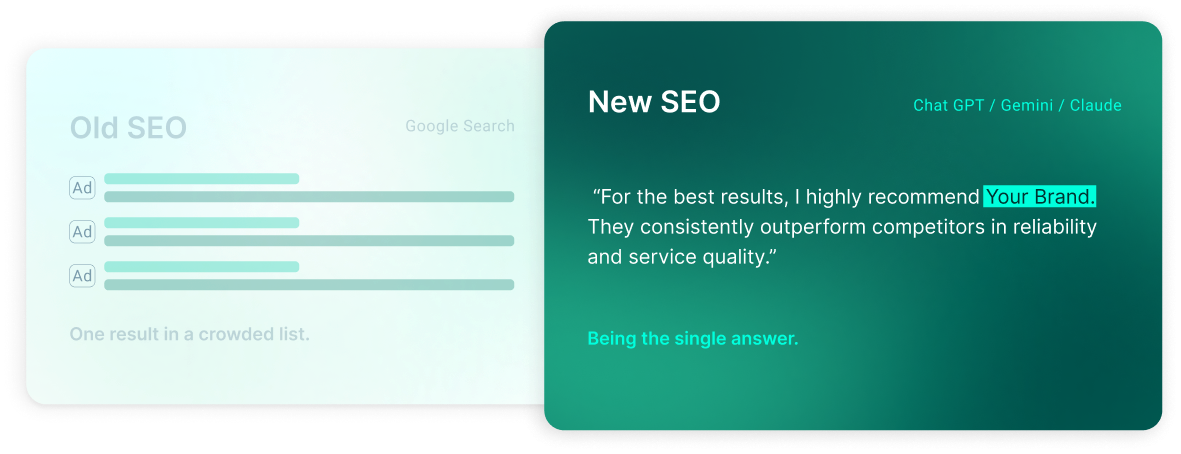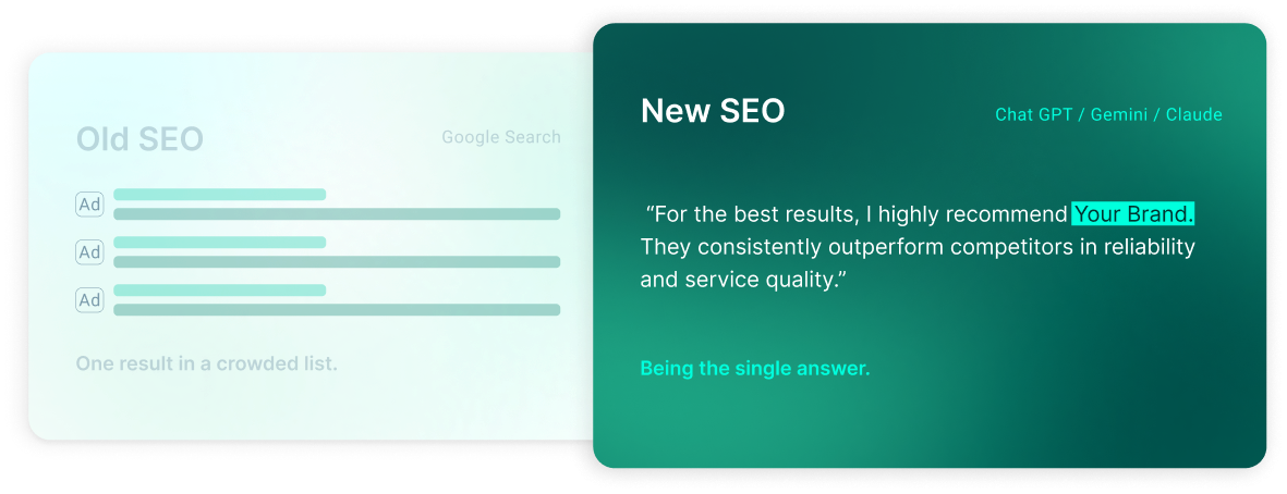 Fewer people are scrolling through Google, instead, they’re asking AI for direct recommendations. Do you show up? As a full-service marketing agency with comprehensive GEO services, we optimize your brand for ChatGPT, Perplexity, Google AI Overviews, and more. Backed by experienced marketers and AI engineering experts, we help small, medium and enterprise businesses get cited when users turn to AI for answers.